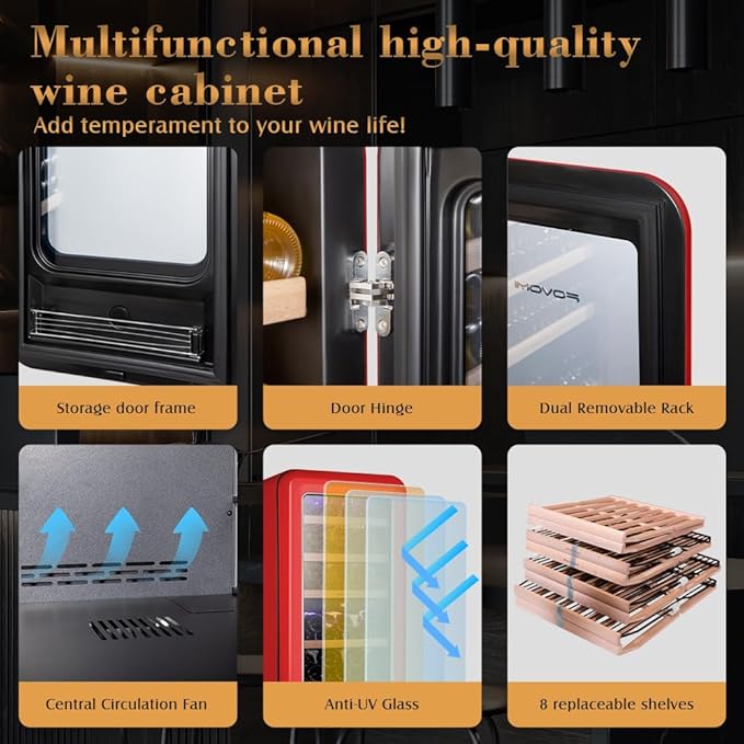- [Powerful Compressor & Noise and Vibration Reduction] Advanced compressor cooling and air defrosting system, and the wine cooler is much quieter than other models, and it will not frost when working. Low noise makes the taste crisp and delicious.<41dB