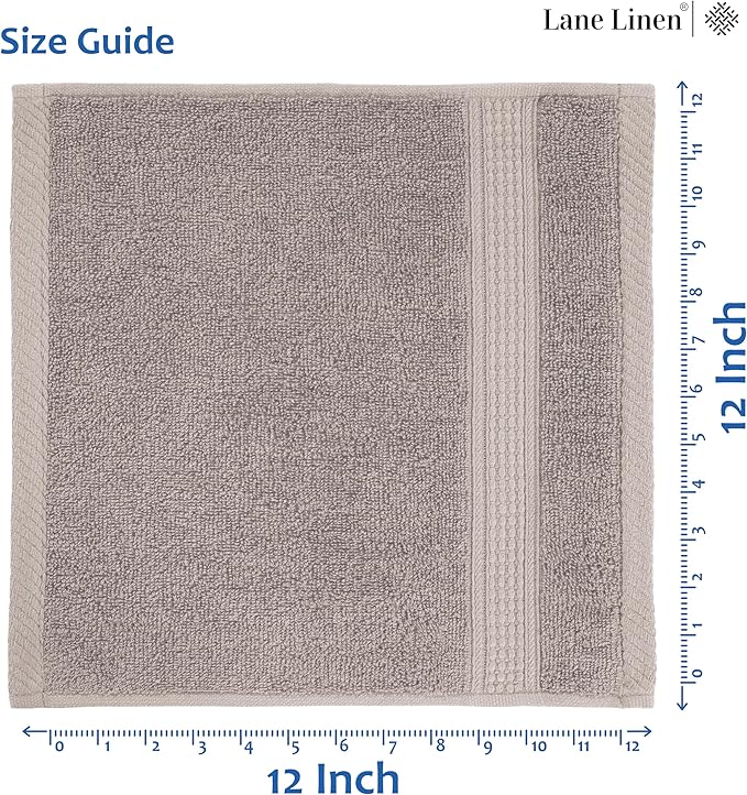 LANE LINEN 100% Cotton Wash Cloths - 24 Pcs - Spa & Salon Quality - Ring Spun Cotton Face Cloths - Soft & Absorbent Washcloths for Body, Beauty, Home, Gym - Fingertip Towels Set - 13"x13", Platinum