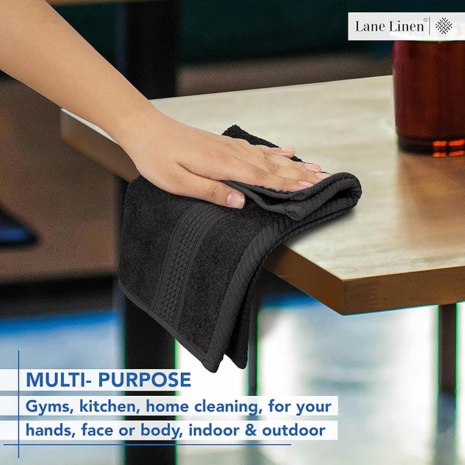 LANE LINEN 100% Cotton Washcloths 24 Pack - Spa & Salon Quality Face Towels - Ring Spun, Soft & Absorbent Wash Cloths for Body, Beauty, Home, Gym - Fingertip Towels Set- 13"x13", Black Washcloths
