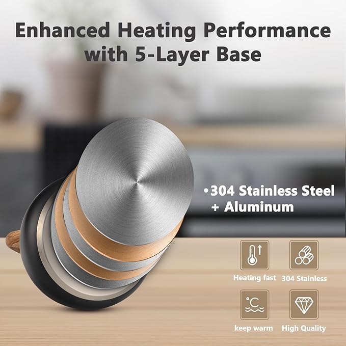 - Rust Proof and Durable: The Harriet tea kettle features an upgraded 5-layer composite bottom and a food-grade 304 stainless steel interior to prevent rust. The composite bottom ensures even heat circulation and fast boiling, making this tea kettle stovetop a reliable kitchen essential