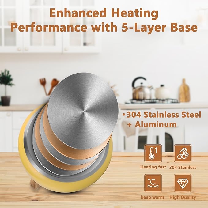 - Rust Proof and Durable: The Harriet tea kettle features an upgraded 5-layer composite bottom and a food-grade 304 stainless steel interior to prevent rust. The composite bottom ensures even heat circulation and fast boiling, making this tea kettle stovetop a reliable kitchen essential