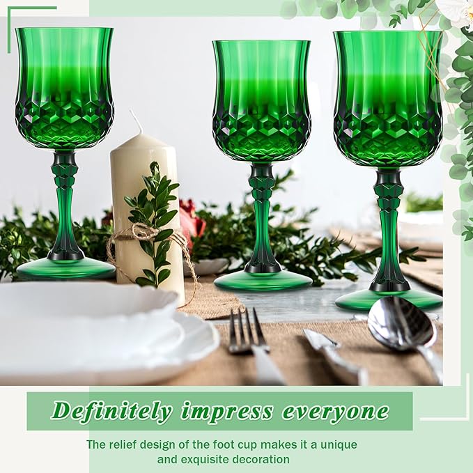 Pinkunn 50 Pcs 7 oz Plastic Vintage Wine Glasses Reusable Colored Goblets Patterned Drinking Water Glasses Cup Dishwasher Safe for Christmas Wedding Reception Party Supplies (Green)