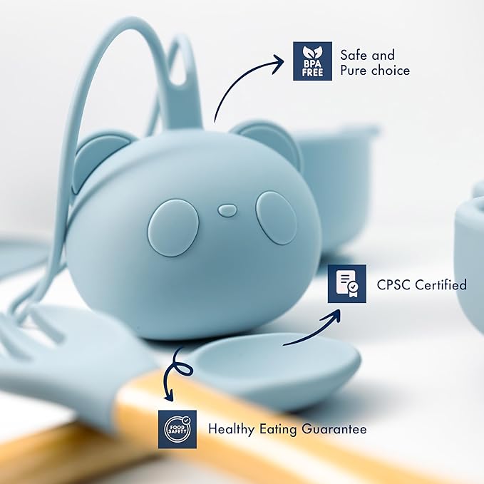 - 🐼 UNCOMPROMISING SAFETY FOR YOUR BABY’S FIRST BITES: The perfect choice for your baby's safety and well-being. Rigorously tested by certified labs, it guarantees unparalleled safety assurance. Crafted from 100% food-grade silicone, it is free from harmful substances like BPA, lead, and PVC, meeting the highest food safety standards in USA and Europe. With a baby-friendly design, rounded edges, and a soft baby spoons and fork, our baby feeding essentials ensures a safe and enjoyable experience for your little one