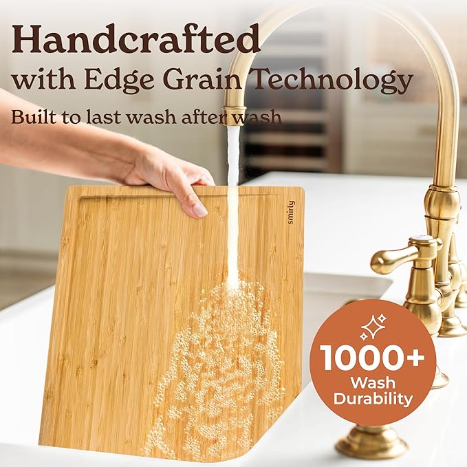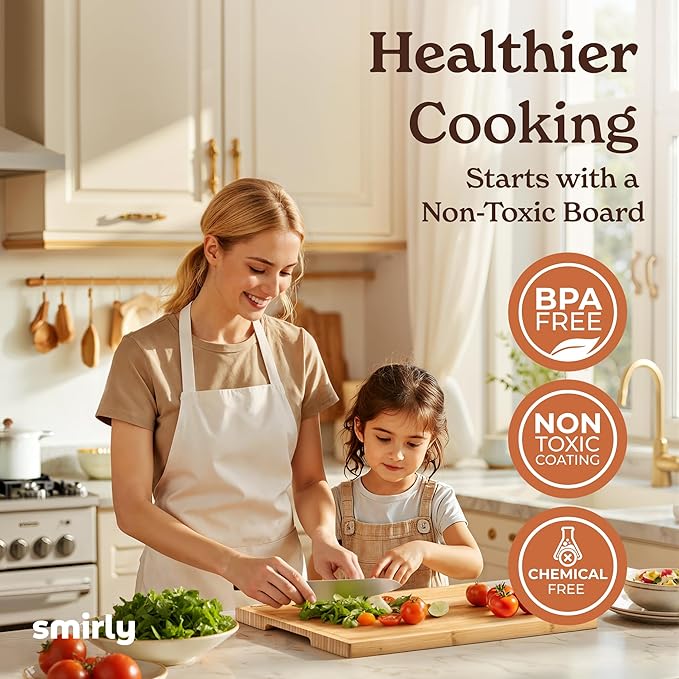 - Effortless Maintenance - Upgrade to non-toxic, easy-to-clean cutting boards for kitchen. Our bamboo boards resist nicks and gouges, ensuring lasting quality with ergonomic handles for comfort.