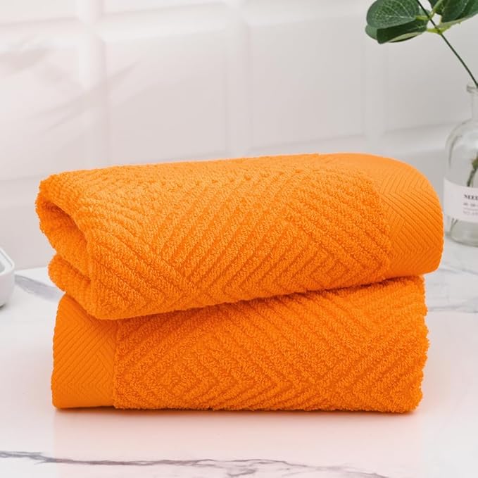 sense gnosis Super Soft Orange Hand Towels Terry Striped Weave Pattern Ultra Absorbent 100% Cotton Hand Towel for Bathroom Home Decorations 13 X 29 Inch, 2 Pieces