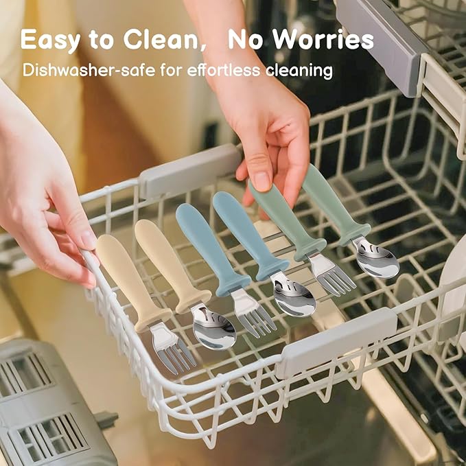 - Quality Materials: This toddler spoons and forks set is made entirely of 18/8 stainless steel and food-grade silicone, BPA-free, durable, easy to clean, dishwasher-safe and boil-safe.
