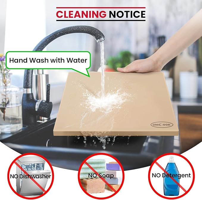 - Hand wash the cooled baking stone with warm water. Never use soap or detergent! Never season with oil or grease!