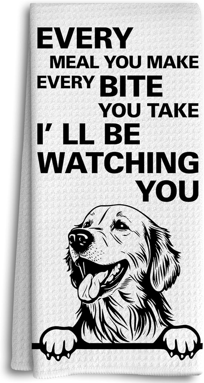 Funny Dish Towels, Golden Retriever Decorative Kitchen Towels, Dog Mom Gifts, Every Meal You Make Every Bite You Take Hand Towels for Bathroom