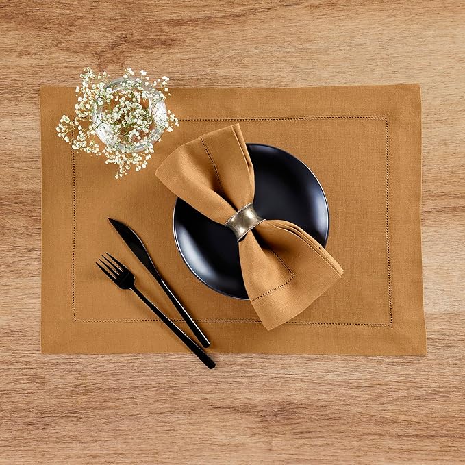 Solino Home Linen Cloth Napkins Set of 4-100% Pure Linen Brown Sugar Dinner Napkins 20 x 20 Inch - Classic Hemstitch, Handcrafted and Machine Washable