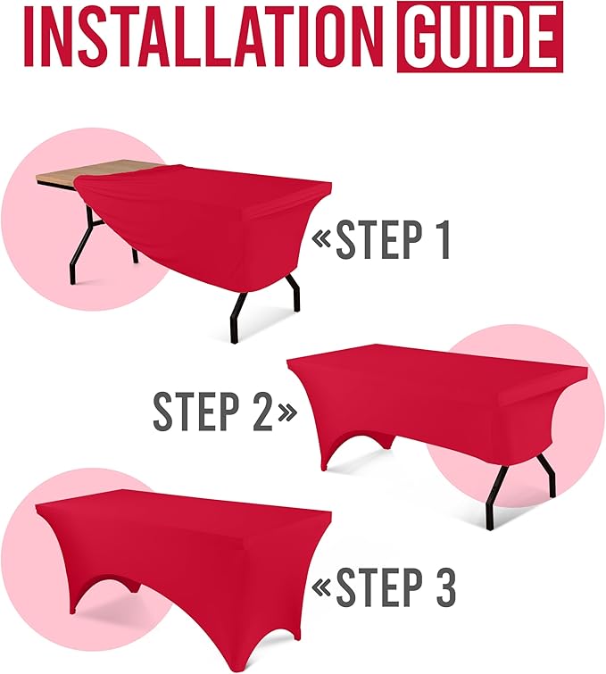 - Snug Fit with Reinforced Pockets: Designed for a 6-foot table (72"L x 30"W x 30"H), this 2-way stretch spandex cover features reinforced leg pockets to ensure a secure, professional look that won’t slip or ride up.