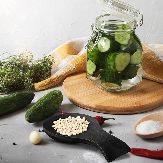 Patelai Acacia Wood Spoon Rest for Stove Top Bamboo Holder for Spatula Rest for Kitchen, Counter Spoon Holder for Countertop, Modern and Rustic for Farmhouse as Dining Table Decoration(Black)
