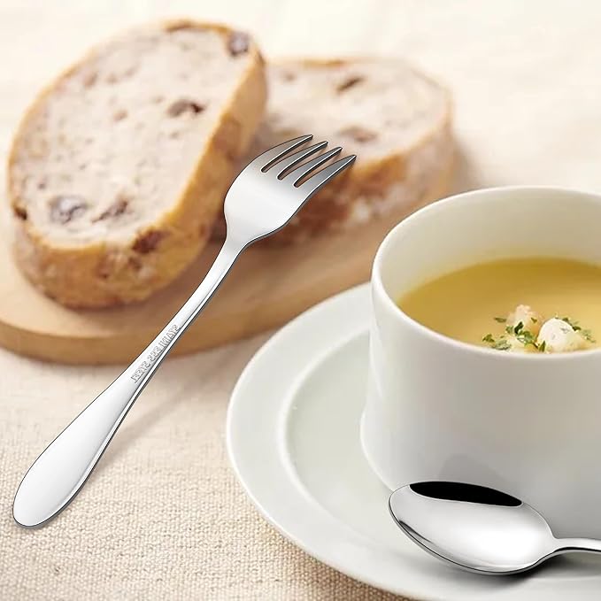 - SET OF 24: Total 24 pieces, Contains 12 for each: 8 inch dinner forks and 8 inch dinner spoons, Can be used for eating spaghetti, thick soup, ice cream, oatmeal, yogurt, pudding and etc., Perfect to replace old dinner forks and spoons or those missing in daily life, Ideal for home, kitchen, restaurant and hotel