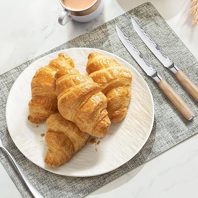 - [Razor-sharp blades] Serrated edges slice through meat with ease, making these knives perfect for steak dinners, BBQs, and camping trips. Experience effortless slicing every time!