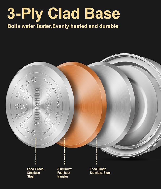 - Perfect Size: Our 2 QT water boiling kettle is perfectly sized for compact kitchens or camping adventures. Whether you're a tea or coffee enthusiast, this small kettle is a versatile addition to your kitchen, heating water quickly and efficiently, thereby saving you time and energy.