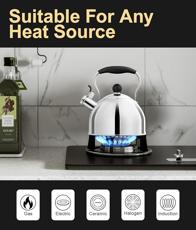 - Widely Used: This stainless steel tea kettle is suitable for any heat source, including induction, electric, gas, and radiant stoves. Exercise caution when using it on an open fire. It is recommended to apply medium-low heat and keep the handle upright to prevent overheating.