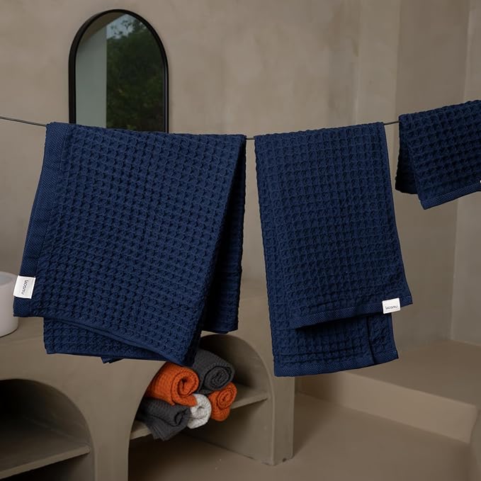 - š§Ultra Absorbent: Think of the waffle weave as thirsty pocketsāthey soak up more water, faster. Oversized for enhanced absorbency and full-body coverage, Kosmu Towels dry youāand themselvesāquickly, keeping your bathroom fresh and odor-free after every use.