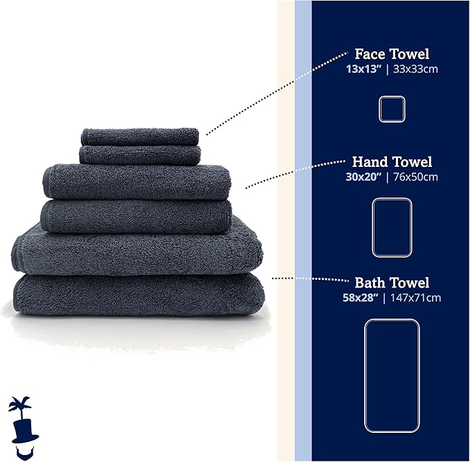 - 6-piece towel set includes generously sized (2) 58 x 28-inch bath towels, (2) 30 x 20-inch hand towels, and (2) 13x13-inch face cloths / wash cloths.