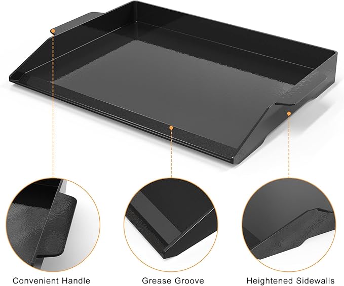 Onlyfire Universal Enamelled Cast Iron Cooking Griddle, Nonstick Coating Griddle Flat Top Grill Plate with extra high sidewalls for All Gas Grills and 4 Burner Range Oven, 23" x 16"