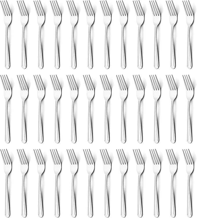 BEWOS 36-Piece Dinner Fork Set, 8.2-Inch Stainless Steel Silverware, Mirror Polished, Dishwasher Safe, For Home, Kitchen or Restaurant