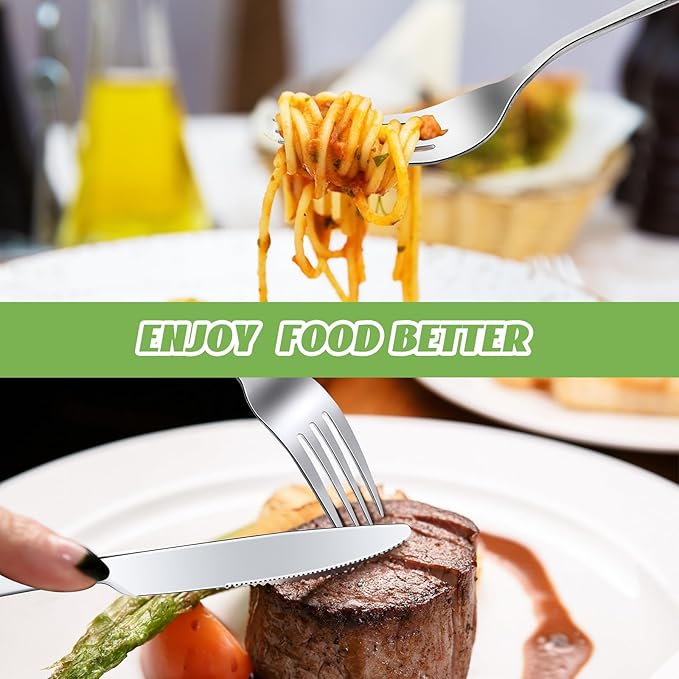- Quality Material: the forks and knives set is crafted with quality stainless steel; The durability of this material ensures that the utensils will not warp, discolor, or bend easily, which adds longevity, at the same time, it is also dishwasher safe, bringing you convenience