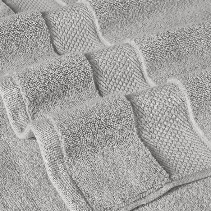 - Crafted with a 650 GSM combed-cotton, our bath towel set is designed to quickly absorb water from your skin after a long bath. Affordable and long-lasting, our bath set provides access to the kind of luxury towels you use to only experience on vacation. Bath Towels measure 30 by 54 inches, Hand towels measure 16 by 28 inches, Washcloths measure 13 by 13 inches.