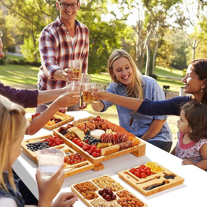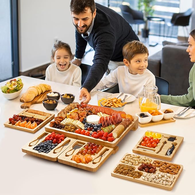 - 𝐂𝐫𝐞𝐚𝐭𝐞 𝐀 𝐆𝐫𝐞𝐚𝐭 𝐋𝐢𝐟𝐞 𝐄𝐱𝐩𝐞𝐫𝐢𝐞𝐧𝐜𝐞: Enjoying food with friends and family is one of the most enjoyable experiences in life. The premium charcuterie boards set not only gives you a variety of functional boards to design unique and gorgeous platters for different occasions, but also accents the table and keeps it tidy at all times