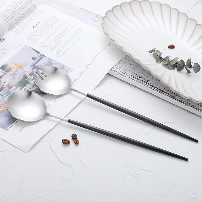 Salad Servers,Spoon and Fork Set 11.41 inch,18/10 Stainless Steel Salad Serving Titanium Plating (black silver)