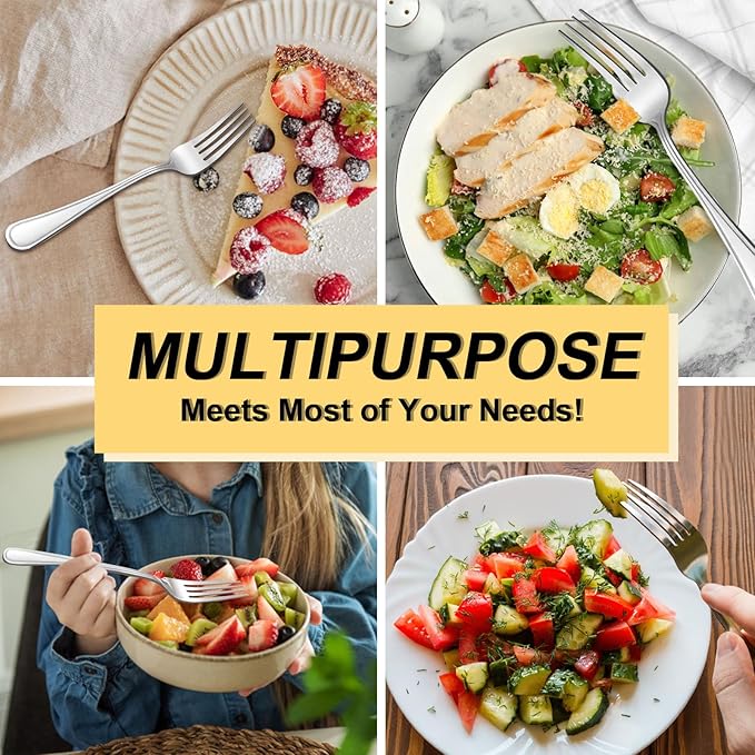 - 【MULTIPLE OCCASIONS】These elegant metal forks silverware are suitable for everyday dining use as well as for parties, festivals and formal occasions. What's more, BEWOS stainless steel salad forks are perfect for homes, hotels, restaurants and can be served for weddings, celebrations, family dinners and more! Most importantly, these silverware forks are also a great choice as a gift!