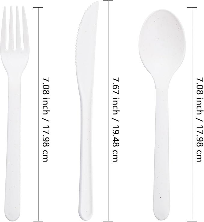 - Widely used:Reusable white tableware,stylish packaging,strong,lightweight,safe,quality wheatgrass tableware set is a good choice for gifts,than disposable plastic silverware.