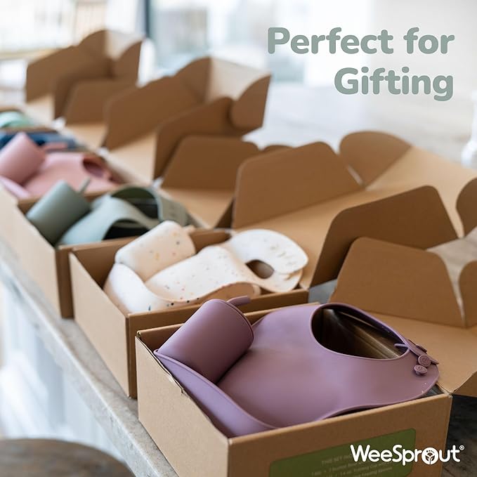 WeeSprout Baby Led Weaning Bundle, Silicone Suction Bowl, Spoons, Bib & Cup, Develops Self Feeding Skills, Dishwasher Safe (Green)