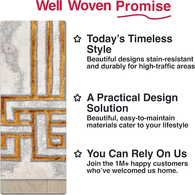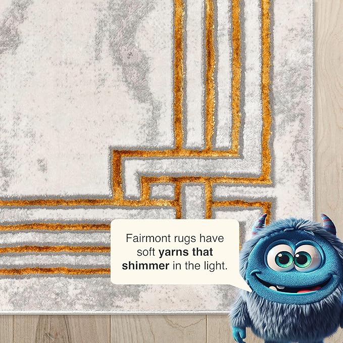 Well Woven Fairmont Collection Huntington Grey Gold & Ivory Marble Border Elegant & Soft 2x3 Mat Rug Perfect for Entryway & Bedroom Durable Stain Resistant & Easy to Clean