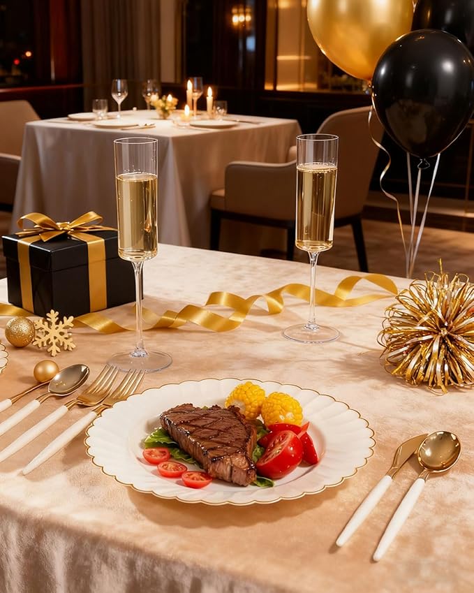 - The Perfect Gift: These plastic toasting glasses are sophisticated, glamorous and luxurious. They will make a unique gift that your family and friends are guaranteed to impress! Celebrate life's most memorable moments with a plastic disposable champagne flutes - weddings, anniversaries, mother's day, a costume reception or an engagement party that will surprise you beyond your wildest expectations.