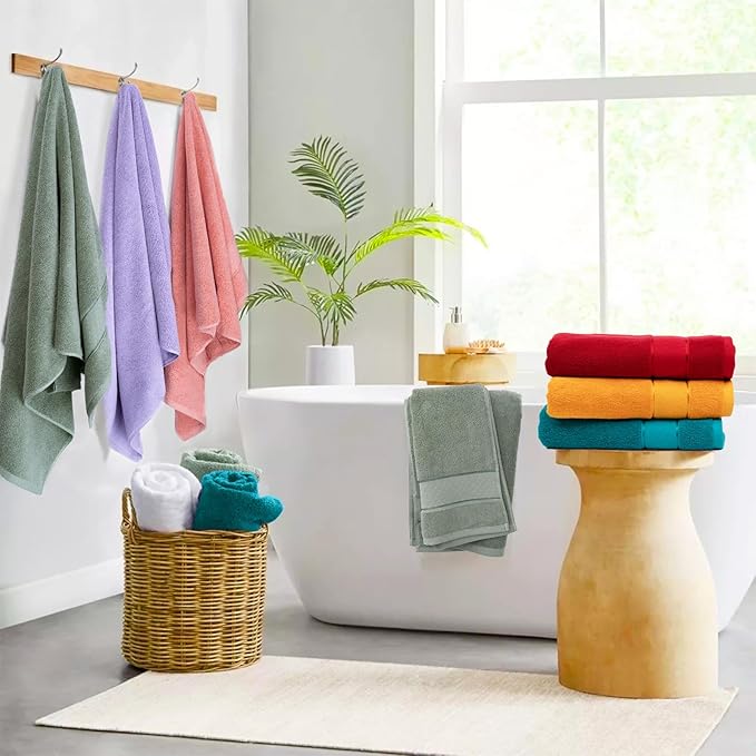 - Enjoy Life:Pamper yourself with Luxurious and comfortable bath towels made of 100% pure cotton. Each towel provides optimal coverage, absorbency. You can use these towels for body works as beach bathroom decor, bathroom decor sets accessories, etc. in your bathroom, hotel & spa, kitchen, gym, and anywhere you need.