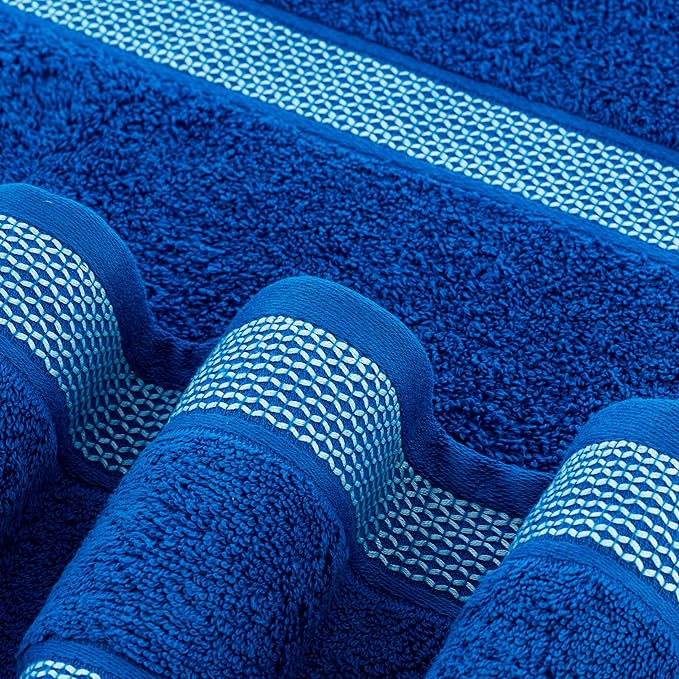 - INGREDIENT: Set contains 2 Large Bath Towels of 27x55 Inches, 2 Large Hand Towels of 16x28 Inches, 2 Washcloths of 12x12 Inches.