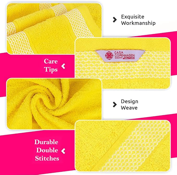 CASA COPENHAGEN Solitaire 6 Pieces Towel Set- Butter Yellow, 600 GSM 2 Bath Towel 2 Hand Towel 2 Washcloth, Designed in Denmark Made of Soft Egyptian Cotton for Bathroom, Kitchen & Shower