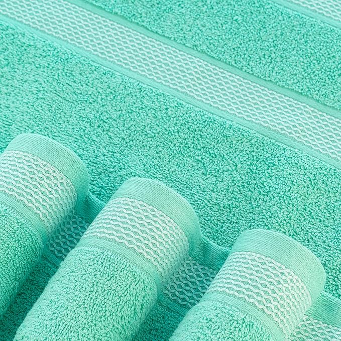 - INGREDIENT: Set contains 2 Large Bath Towels of 27x55 Inches, 2 Large Hand Towels of 16x28 Inches, 2 Washcloths of 12x12 Inches.