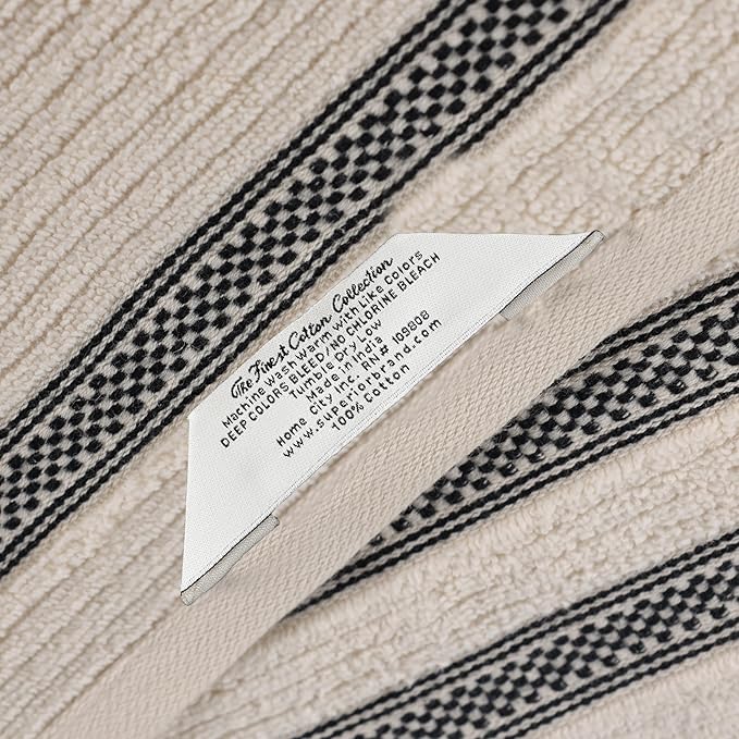Superior Cotton 9-Piece Towel Set, Zero Twist, Ribbed Geometric, Bathroom Essentials, Shower, Spa, Luxury Plush Soft Absorbent Towels, Includes 3 Bath, 3 Hand, 3 Washcloth/Face Towels, Ivory