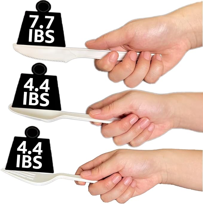 - 【✔️Heavy Duty & Unbreakable】2.5mm Heavy-Duty Design 30% thicker than regular disposable utensils. Won't bend or break with pasta, steak, peanut butter, or ice cream. Holds 1.5lbs of food.