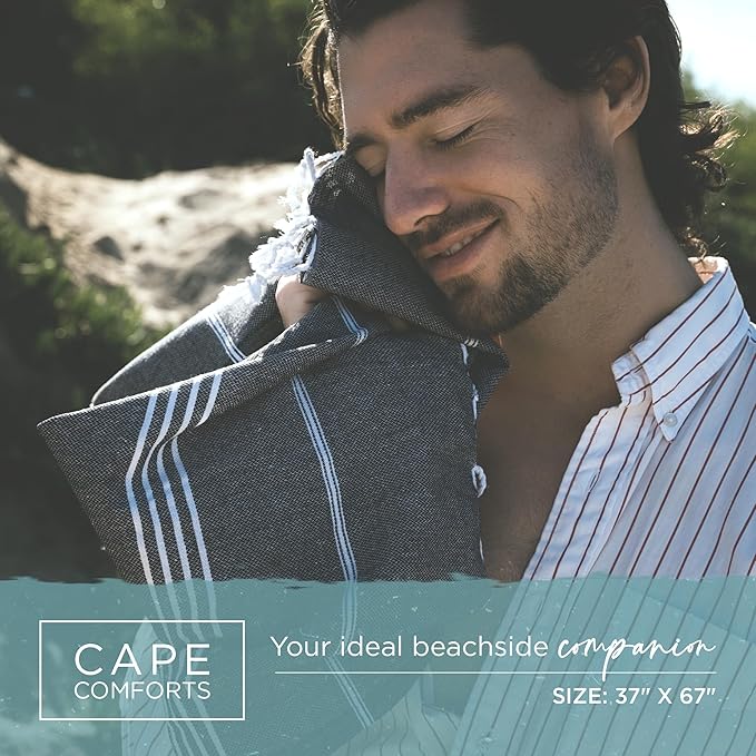 - Ideal Beachside Companion: The Cape Comforts Classic Beach towel is your ultimate beachside essential. Perfect for sunbathing, picnicking, or just relishing the seaside air, this towel is specially designed to cater to all your beach-related needs. 37”x 67”. Color: Black.