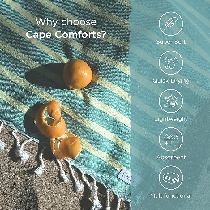 - Travel-Friendly: Compact and lightweight, Cape Comforts beach towels are easy to pack and carry. This makes them an ideal travel companion.