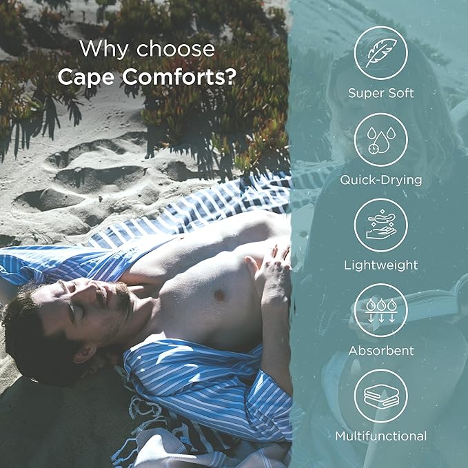 - Travel-Friendly: Compact and lightweight, Cape Comforts beach towels are easy to pack and carry. This makes them an ideal travel companion.