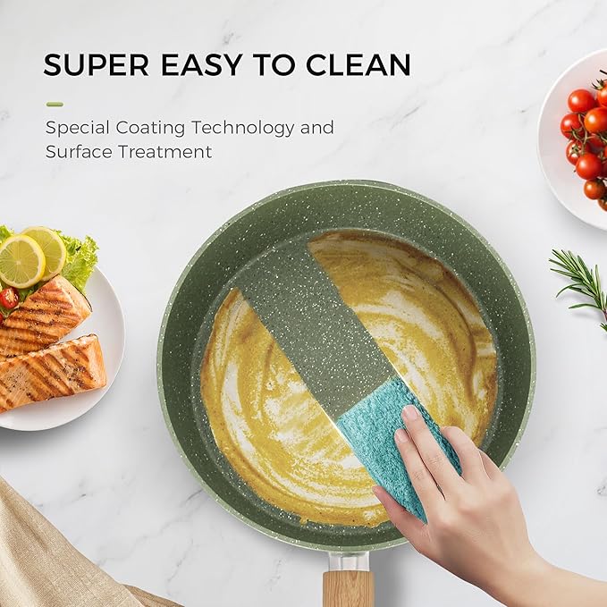 - 【Healthy Nonstick Coating】: PFAS/PTFE/PFOA-Free for healthier meals, effortless food release, and no-scrub cleanup—save time on washing up without sacrificing safety