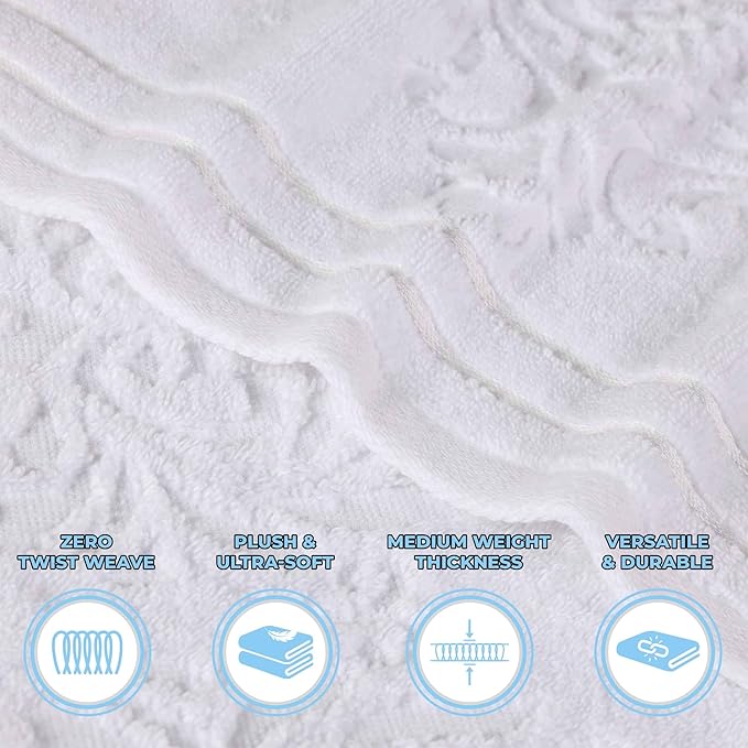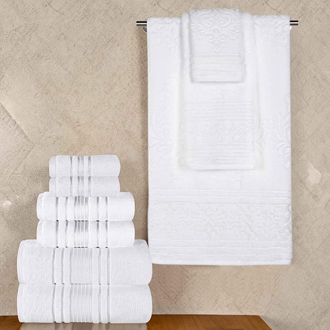 - 𝐄𝐋𝐄𝐆𝐀𝐍𝐓 𝐃𝐄𝐒𝐈𝐆𝐍: This bountiful bundle features an assortment of solid and jacquard, floral motif towels for unique style; excite any master bath, powder room, or guest bathroom with this set; hanging loop allows you to easily hang each towel