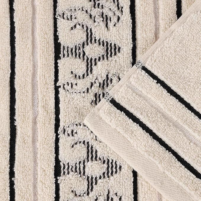 Superior Cotton 8 Piece Assorted Floral Towel Set, Includes 2 Bath, 2 Hand, 4 Washcloth/Face Towels, Quick Dry, Home Essentials, Shower, Spa, Luxury Plush Soft Absorbent Towels, Zero Twist, Ivory