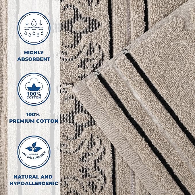 - 𝐄𝐋𝐄𝐆𝐀𝐍𝐓 𝐃𝐄𝐒𝐈𝐆𝐍: This bountiful bundle features an assortment of solid and jacquard, floral motif towels for unique style; excite any master bath, powder room, or guest bathroom with this set; hanging loop allows you to easily hang each towel