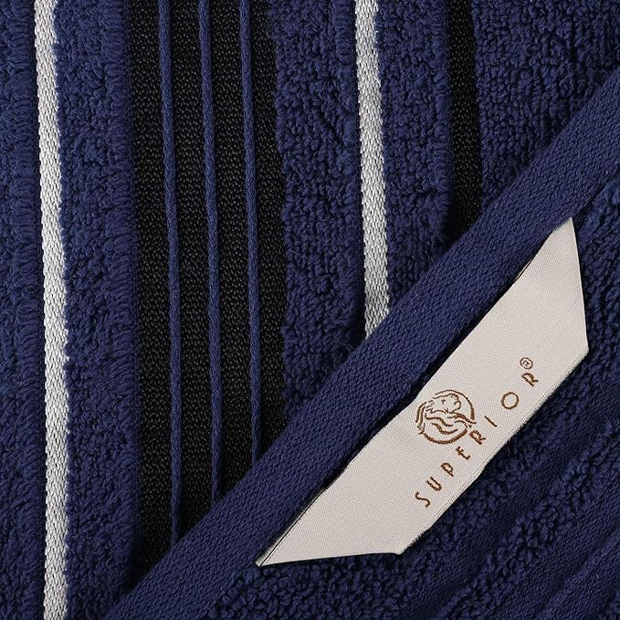 Superior Cotton Face Towel/Washcloth Set, Small Facial Towels, Spa, Hotel, Guest, Home, Bathroom Basics, Plush Soft Absorbent, Luxury Quick Drying, Zero Twist, Assorted Floral Set of 12, Navy Blue
