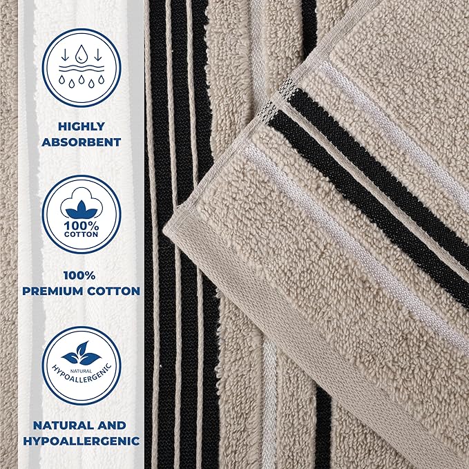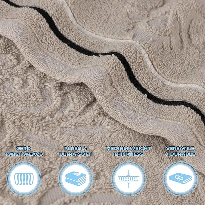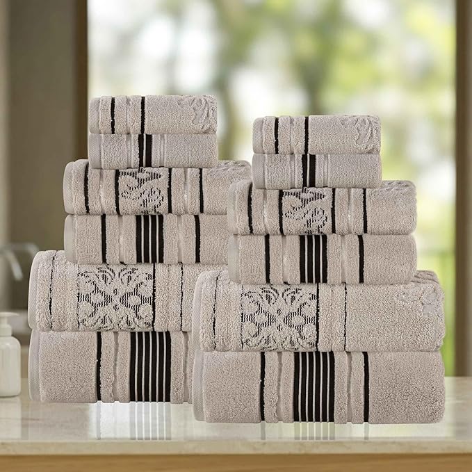Superior Cotton 12 Piece Assorted Floral Towel Set, Includes 4 Bath, 4 Hand, 4 Washcloth/Face Towels, Quick Dry, Home Essentials, Shower, Spa, Luxury Plush Soft Absorbent Towels, Zero Twist, Stone