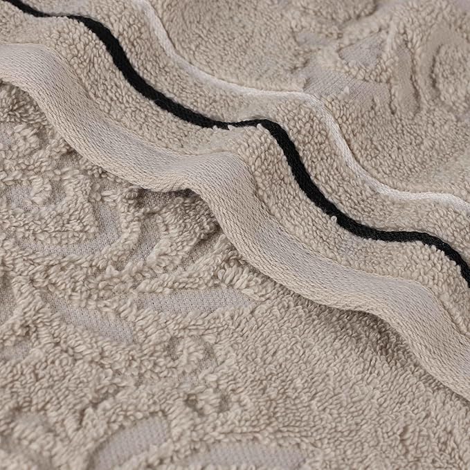 - 𝐄𝐋𝐄𝐆𝐀𝐍𝐓 𝐃𝐄𝐒𝐈𝐆𝐍: This bountiful bundle features an assortment of solid and jacquard, floral motif towels for unique style; excite any master bath, powder room, or guest bathroom with this set; hanging loop allows you to easily hang each towel