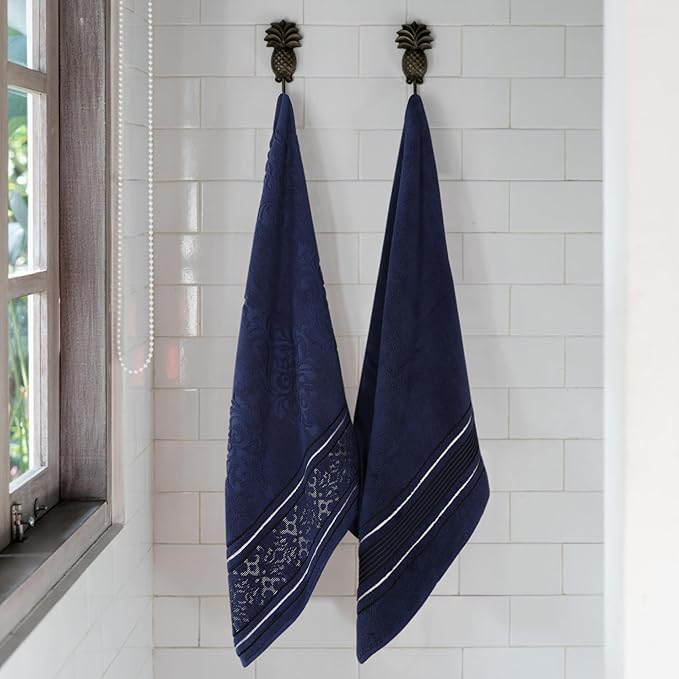 Superior Cotton Bath Sheet Set, Zero Twist, Oversized Large Absorbent Body Towels, Luxury Soft Drying, Shower, Spa, Hotel, Pool, Guest Bathroom, Home Essentials, Assorted Floral Set of 2, Navy Blue