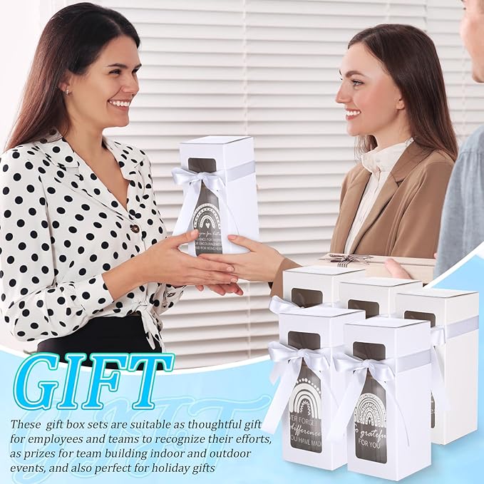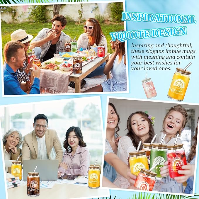 - Employee Appreciation Gifts Set: you will receive 12 set employee appreciation gift boxes set, including 12 pcs 16 oz glass cups with clear texts printed on surface (with 12 bamboo lids, 12 glass straws, and 12 glass straw brushes), and 12 pcs 7.48 inch glass cup gift boxes (with 12 ribbons); Sufficient quantity makes it convenient for you to use anytime and anywhere, and it is a very practical and exquisite combination set